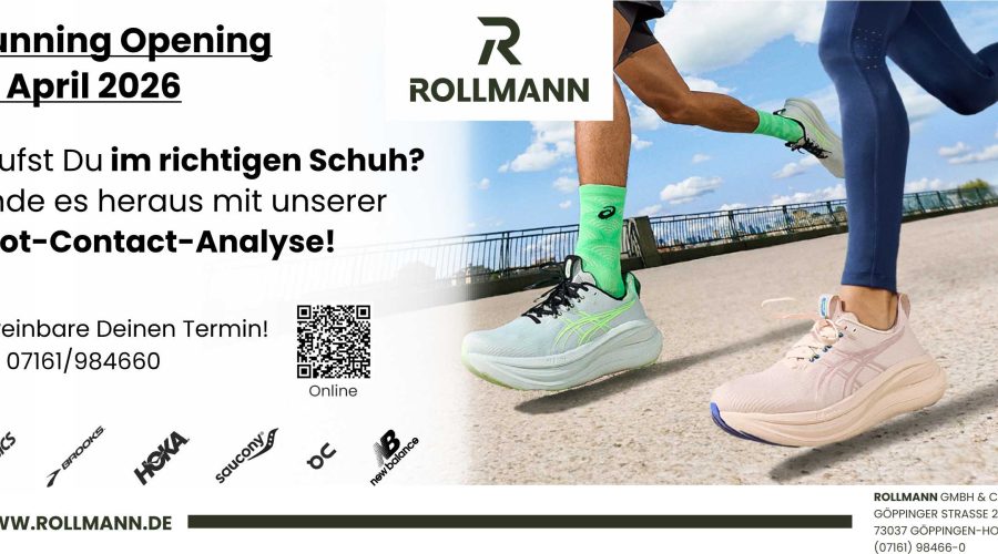 Running Opening! Passgenaue Laufschuhe! Reserviere dir für Samstag, den 11. April 2026 zum Running Aktionstag einen exklusiven Termin für unsere Foot-Contact-Analyse. Auf Basis der Vermessung können wir dir die perfekte Laufschuh Empfehlung geben. Lass deine Füße sprechen – exklusiv bei...